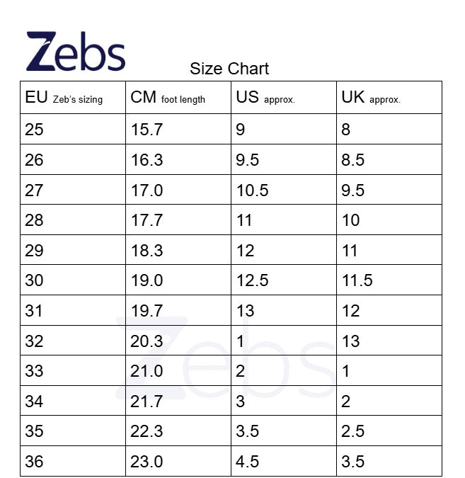 To get the best fit, measure your child’s foot from heel to longest toe (in cm), then add minimum 1 cm for wiggle room and natural growth.